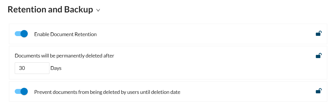 4. If it is not already enabled, toggle on ‘Enable Document Retention’.